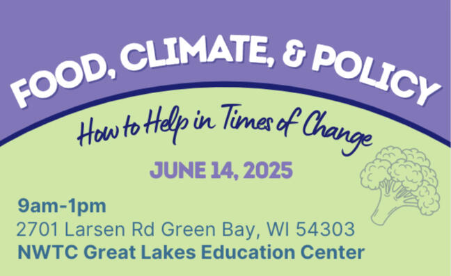 Crystal will be representing Clean Water Action Council at this event, along with other Northeast WI nonprofits and affiliates for a morning of roundtable discussions around food, climate, and policy change followed by an optional lunch. Discuss solutions to make a difference in our community!Go to NEW Leaf Foods
